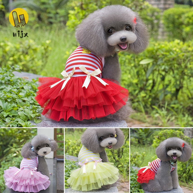 Wijx Summer Korean Summer Dog Lace Tullle Dress Pet Dog Pettiskirt Princess Striped Bowknot Tutudress Puppy Costume Sg Shopee Singapore